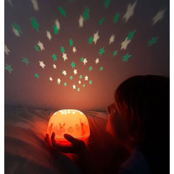 Αυτή η μοναδική λάμπα με σχέδια κουνελάκια προβάλλει τα αστέρια στο ανώτατο όριο του υπνοδωματίου ή του υπνοδωματίου παιδιού σας.