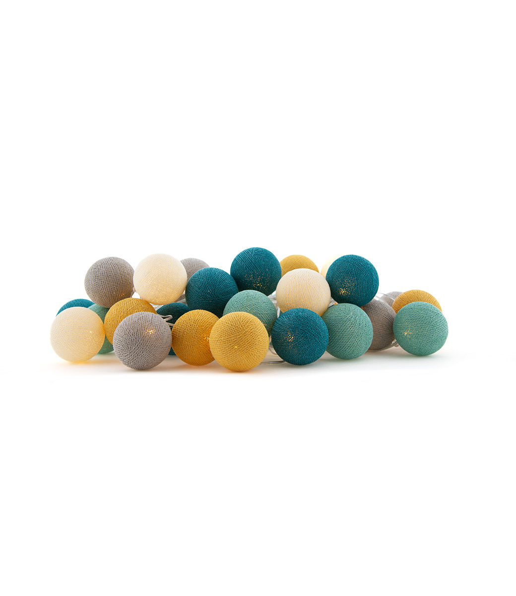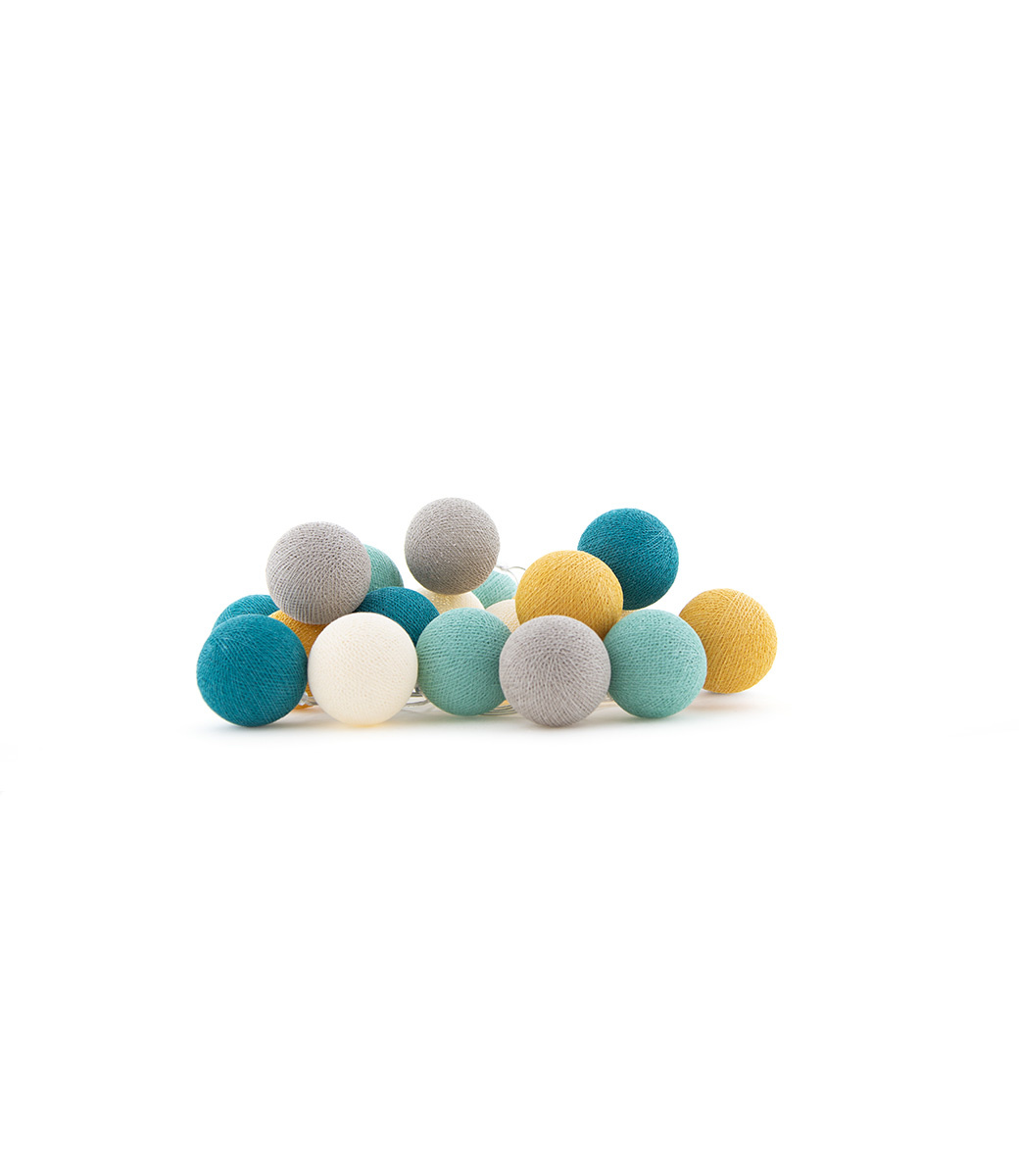 Η συσκευασία περιλαμβάνει 20 τεμάχια cotton ball lights LED, διάφανο καλώδιο συνολικού μήκους 378 cm με διακόπτη ON/OFF, αντάπτορα ρεύματος και οδηγίες συναρμολόγησης και λειτουργίας.