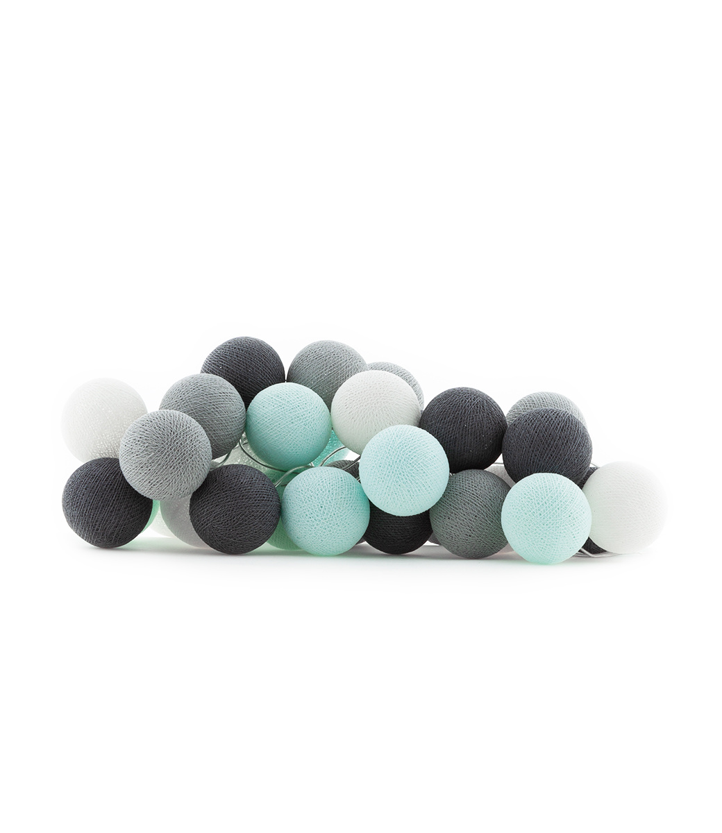 Η συσκευασία περιλαμβάνει 35 τεμάχια cotton ball lights LED, διάφανο καλώδιο συνολικού μήκους 558cm με διακόπτη ON/OFF, αντάπτορα ρεύματος και οδηγίες συναρμολόγησης και λειτουργίας.