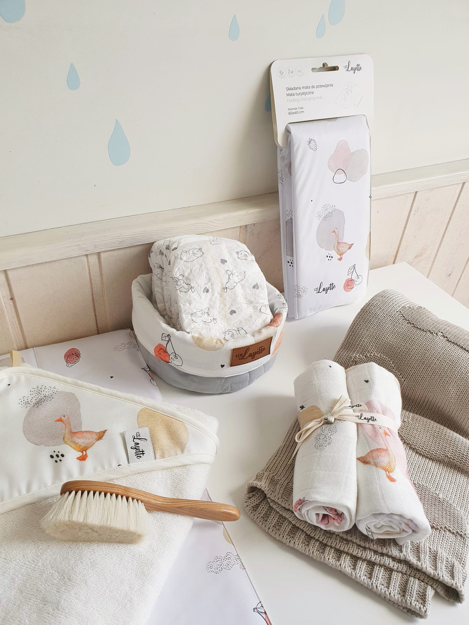 Απαλό, αντιαλλεργικό καλαθάκι αποθήκευσης για τα αξεσουάρ και τα καλλυντικά του μωρού.