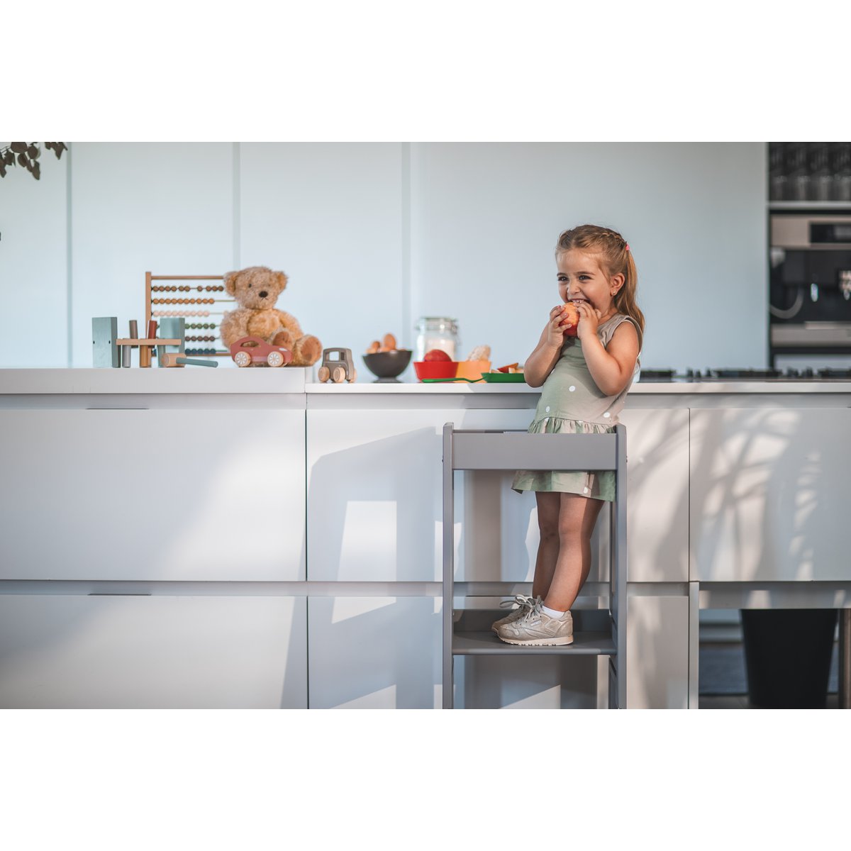 Έχει σχεδιαστεί για να φέρει το παιδί σας πιο κοντά σας, στην κουζίνα ή στο τραπέζι, επιτρέποντας στο παιδί σας να παρατηρεί και να μαθαίνει τις κοινωνικές αλληλεπιδράσεις από πολύ νωρίς. Όταν το παιδί σας σας βοηθά στη μαγειρική, αναπτύσσετε έναν ισχυρότερο δεσμό και το παιδί σας μαθαίνει καλύτερες γλωσσικές και κοινωνικές δεξιότητες. Ο πύργος ανακάλυψης μωρών tiSsi είναι ένα πρακτικό εργαλείο για την καθημερινή ζωή με τα παιδιά. Παρέχει μια ιδιαίτερα ασφαλή πλατφόρμα για να σταθείς και άφθονη ελευθερία κινήσεων. Ο πύργος εκμάθησης tiSsi μπορεί να προσαρμοστεί τέλεια στο ύψος του παιδιού σας με λίγα μόνο απλά βήματα. Χάρη στη μεγάλη του χωρητικότητα φορτίου, το παιδί σας μπορεί να συνεχίσει να το χρησιμοποιεί καθώς μεγαλώνει.